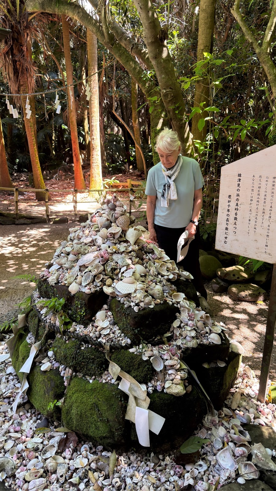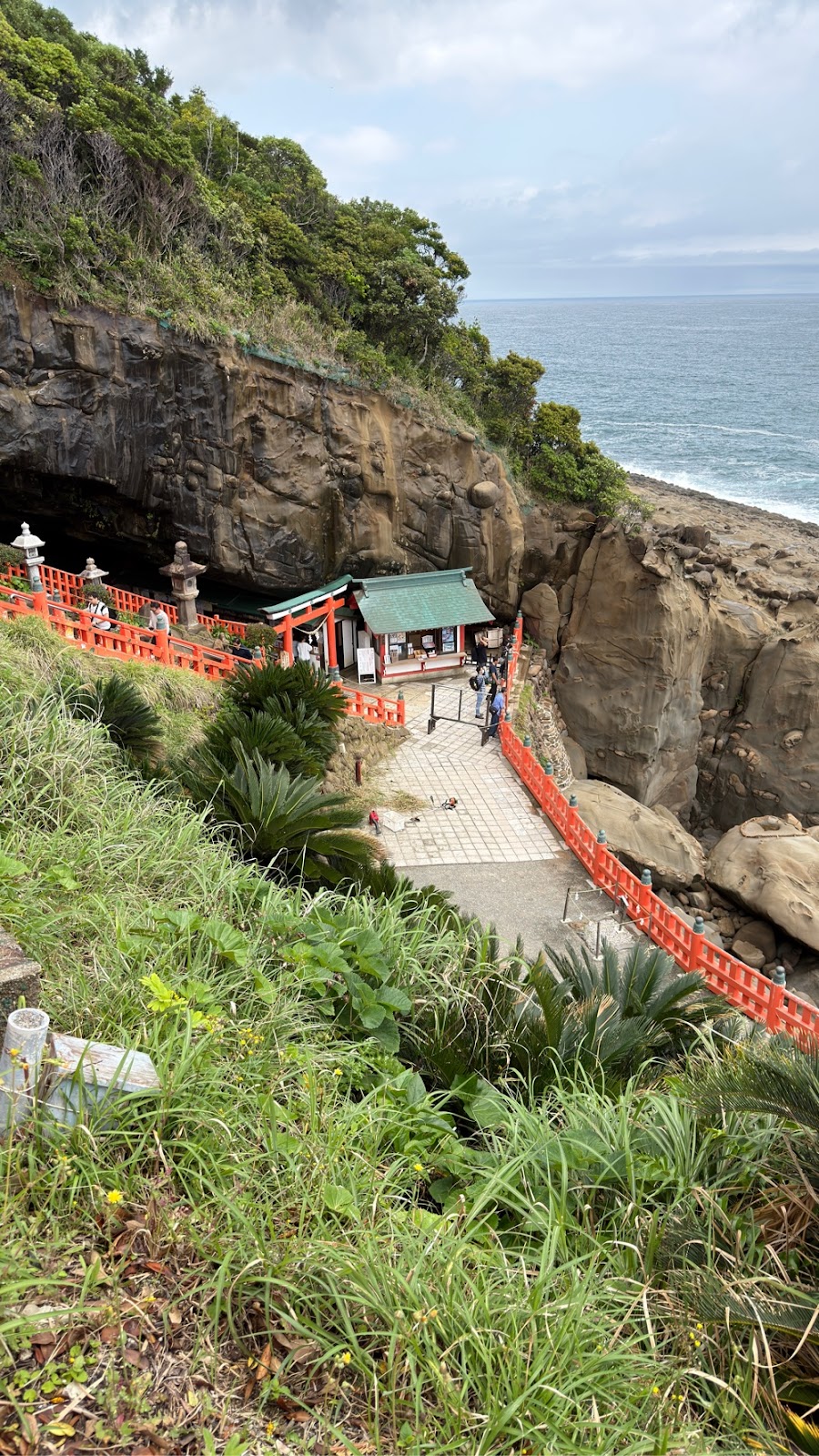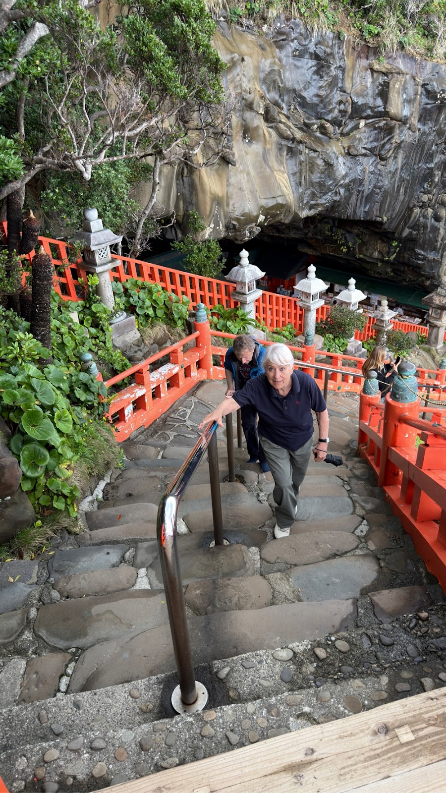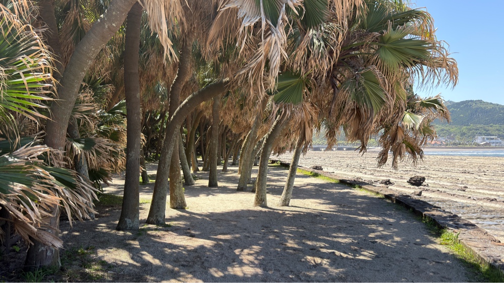 Det var betagende at gå langs kysten med de grønne høje bjergskrænter på højre hånd og havet med øer og skær på venstre hånd. (Vi gik med uret om Onyujima).