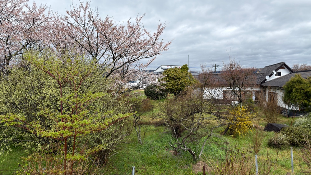 Der var adskillige mindre bygninger udover den imposante hovedbygning. Og også én med et kirsebærtræ.
