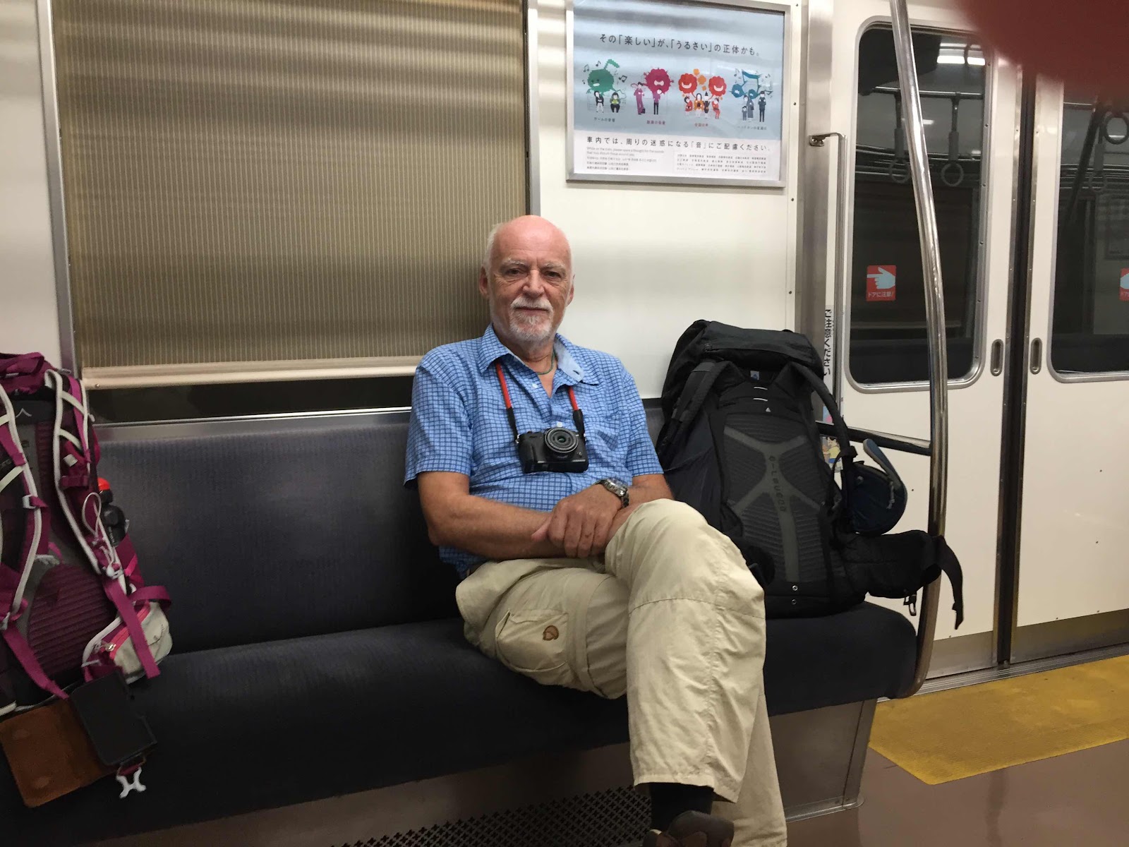 Her sidder en tilfreds ældre herre i ét af togene: