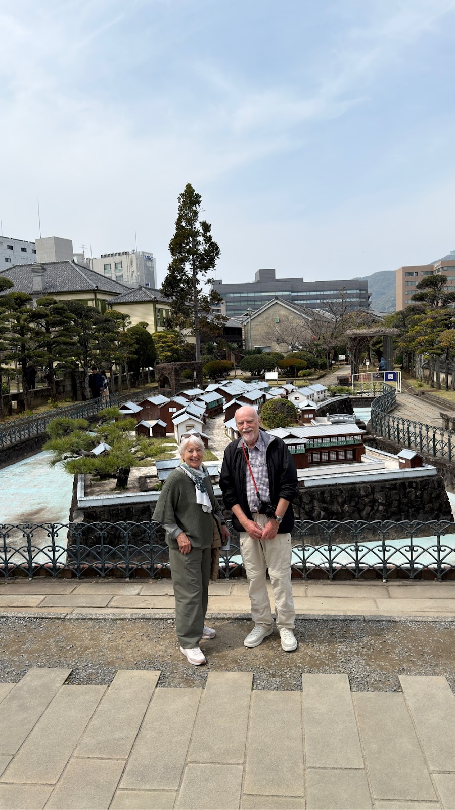 På vejen tilbage besøgte vi Dejima “ museet” . Dejima var en kunstig ø, som blev bygget for at hollænderne i 1600-tallet og må 200 år frem ikke skulle blande sig med japanerne, men dog stadig stå for handlen med den øvrige verden. Dejima er ikke længere en ø, men fungerer som et slags “ frilandsmuseum”. Det var fint at besøge stedet og få en lidt anden historie om Nagasaki end vi fik i går omkring atombomben.