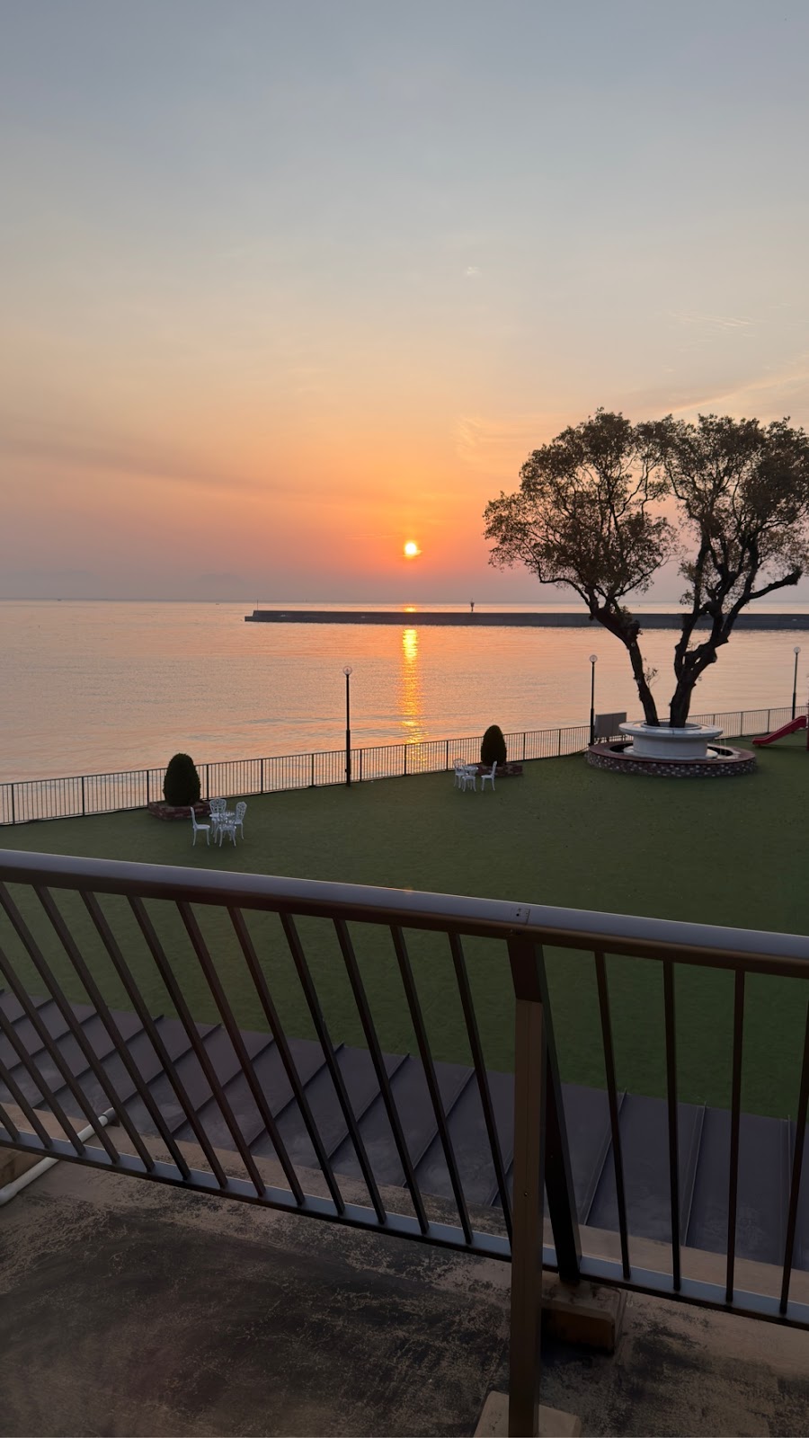 Dagen begyndte (tidligt) med en flot solopgang vi kunne iagttage direkte fra vores store senge igennem terrasse vinduet.