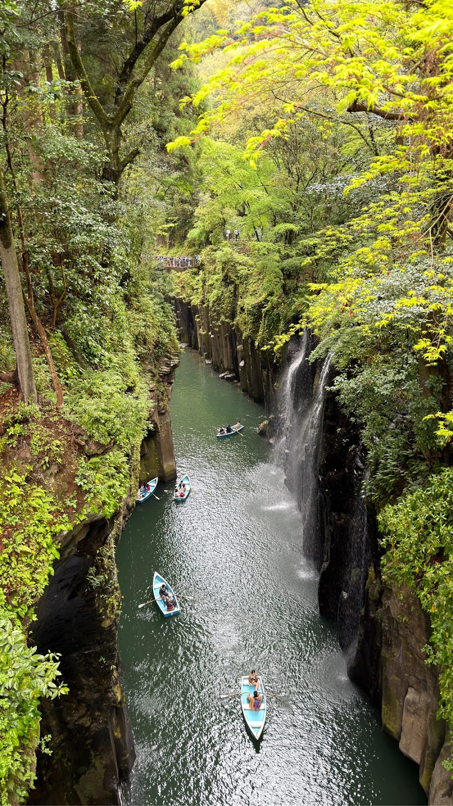 Det var masser af mennesker ved Takachiho kløften, som var meget imponerende og flot.